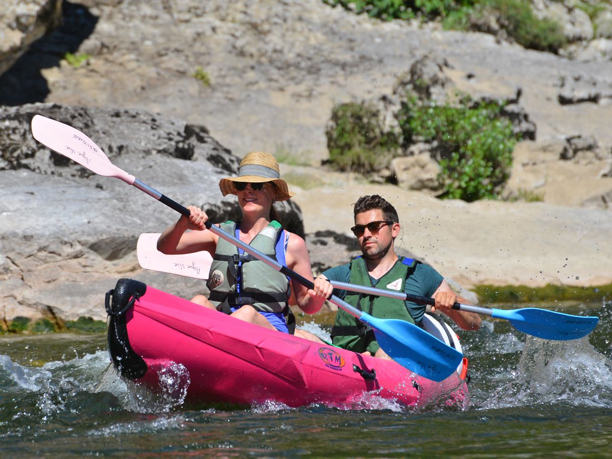 Kanuverleih vor Ort, für die Kanuabfahrt in der Ardèche-Schlucht (8 km, 13 km, 24 km oder 32 km), Start direkt vom Campingplatz aus, Shuttleservice zur Rückkehr auf den Campingplatz.